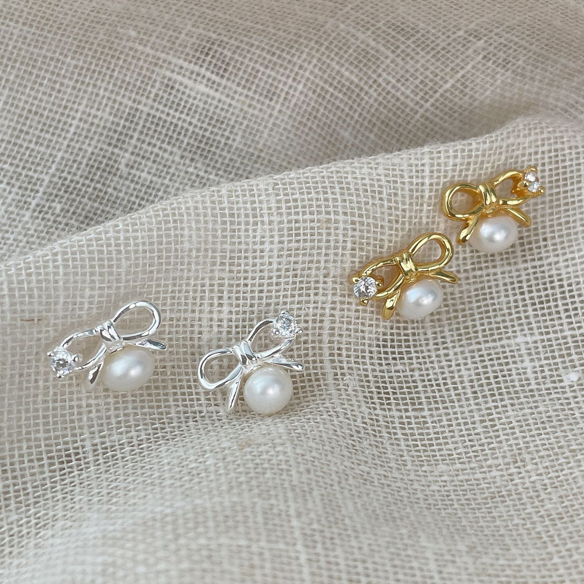 925 silver micro-set zircon pearl bow stud earrings