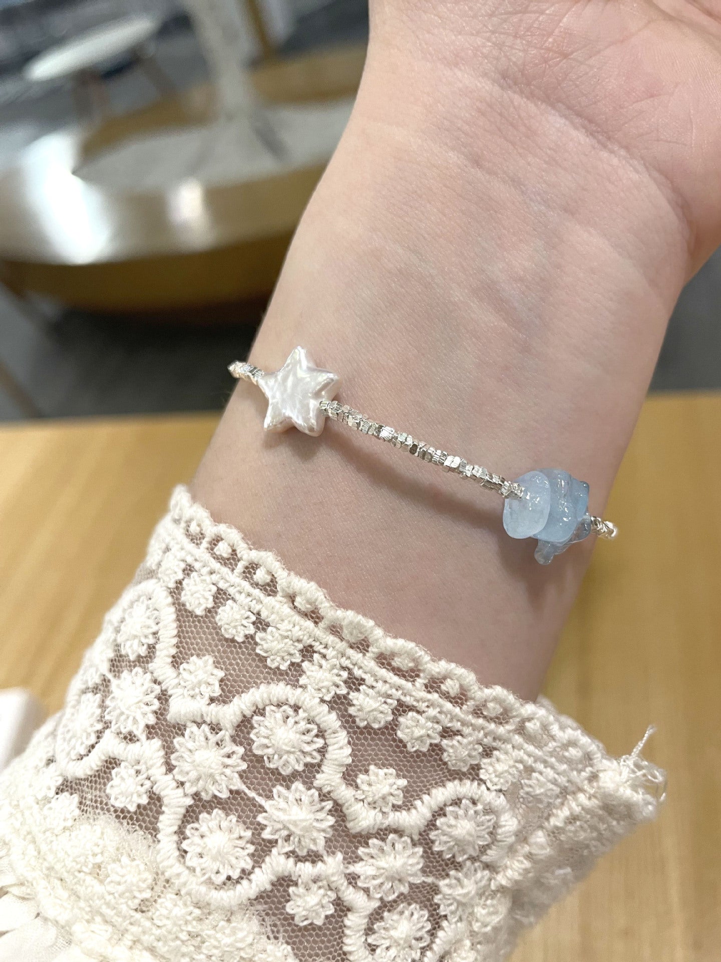 925 Silver Star Baroque Freshwater Pearl Crushed Silver Bracelet