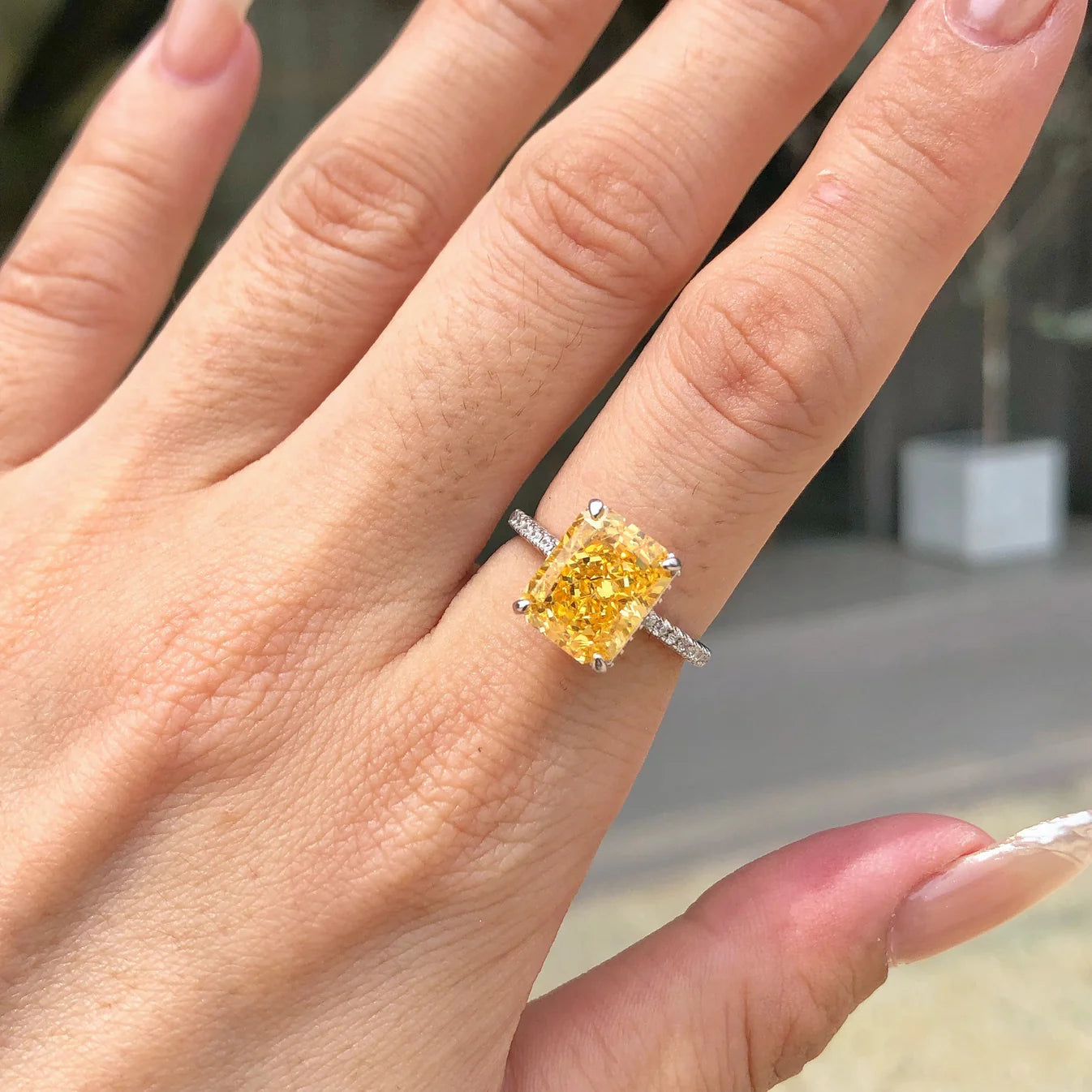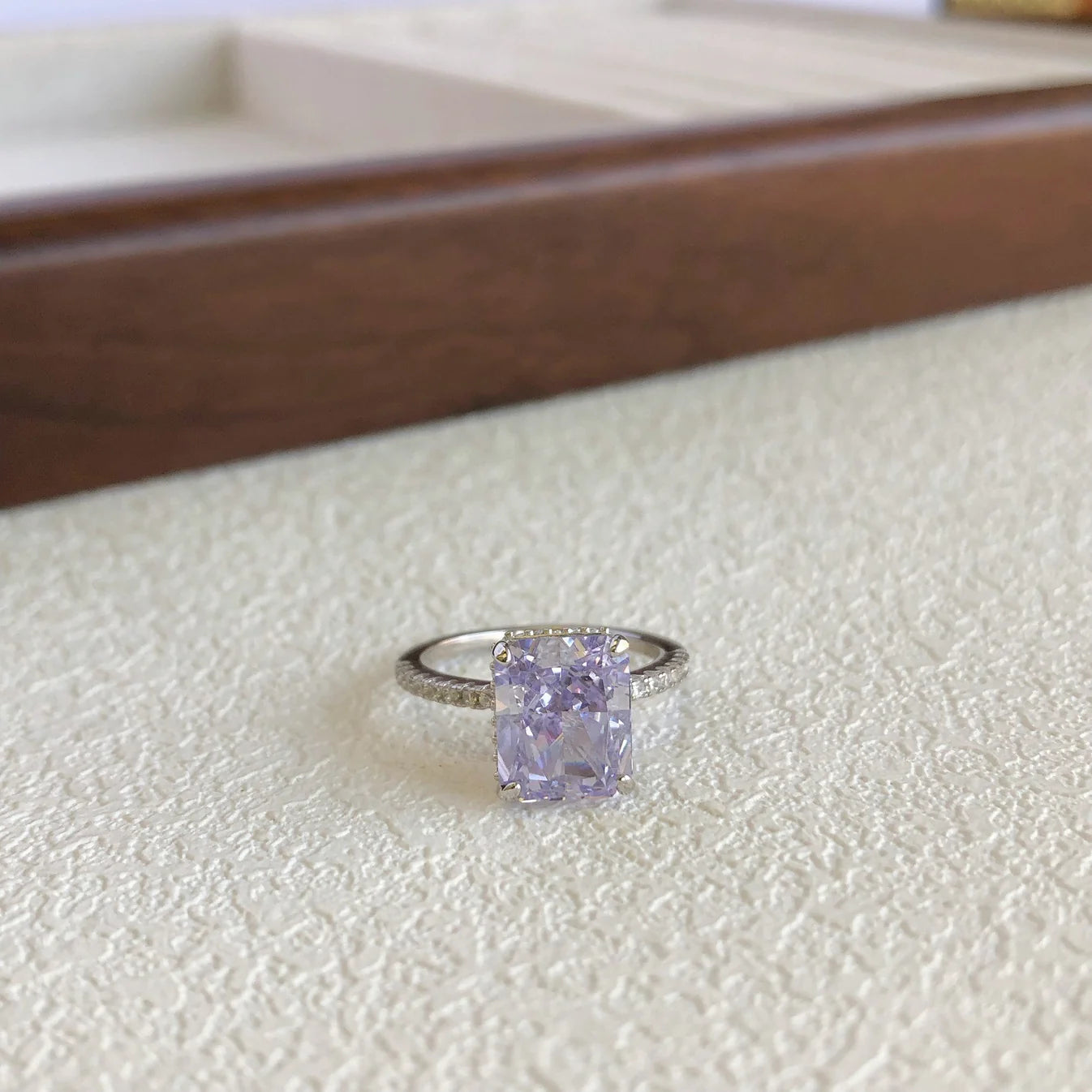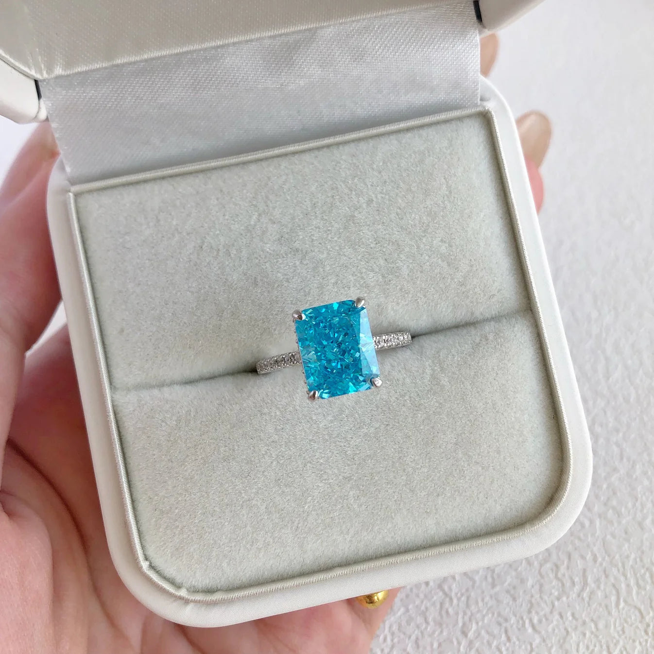 925 Sterling Silver High Carbon Diamond Colored Zircon Super Flash Wedding Ring