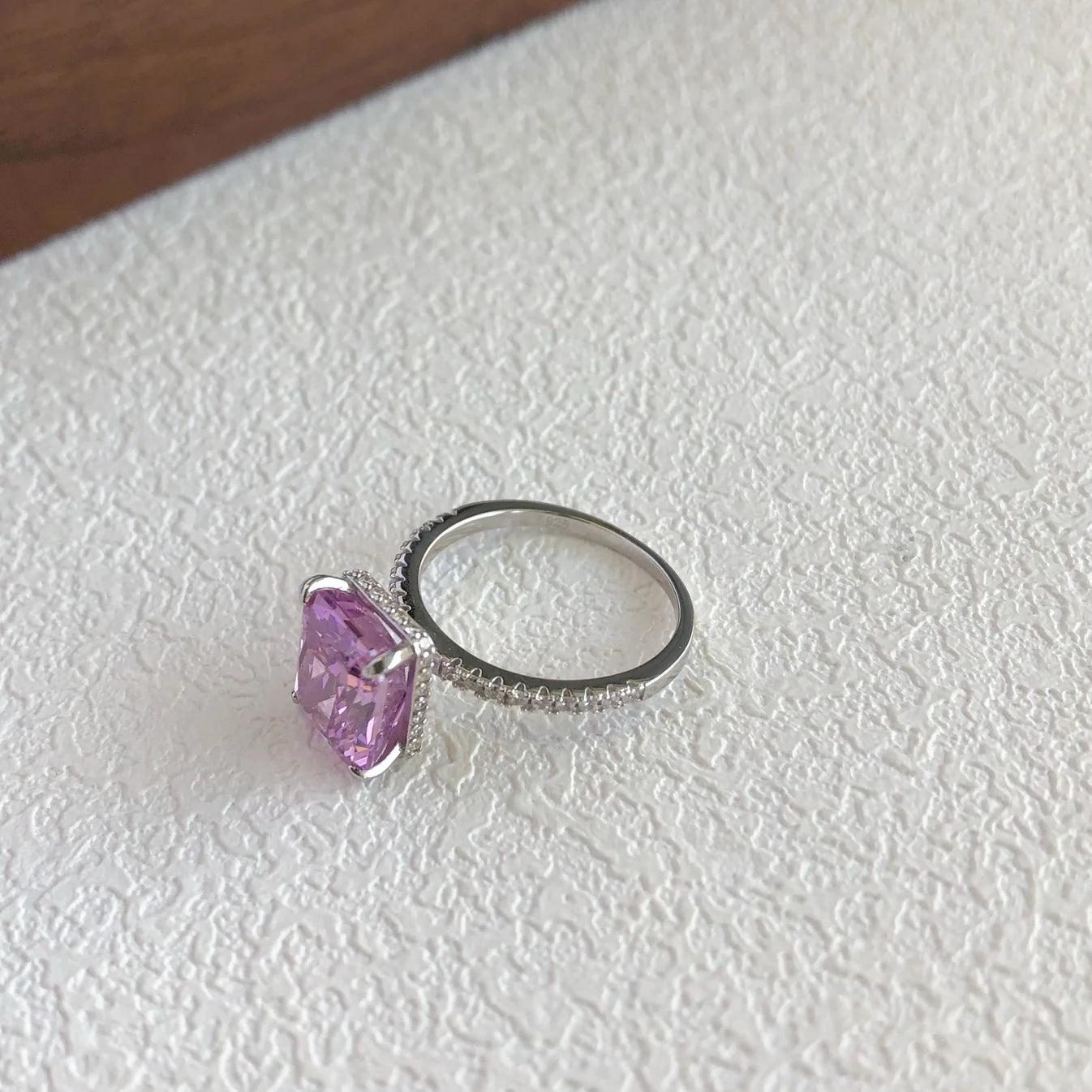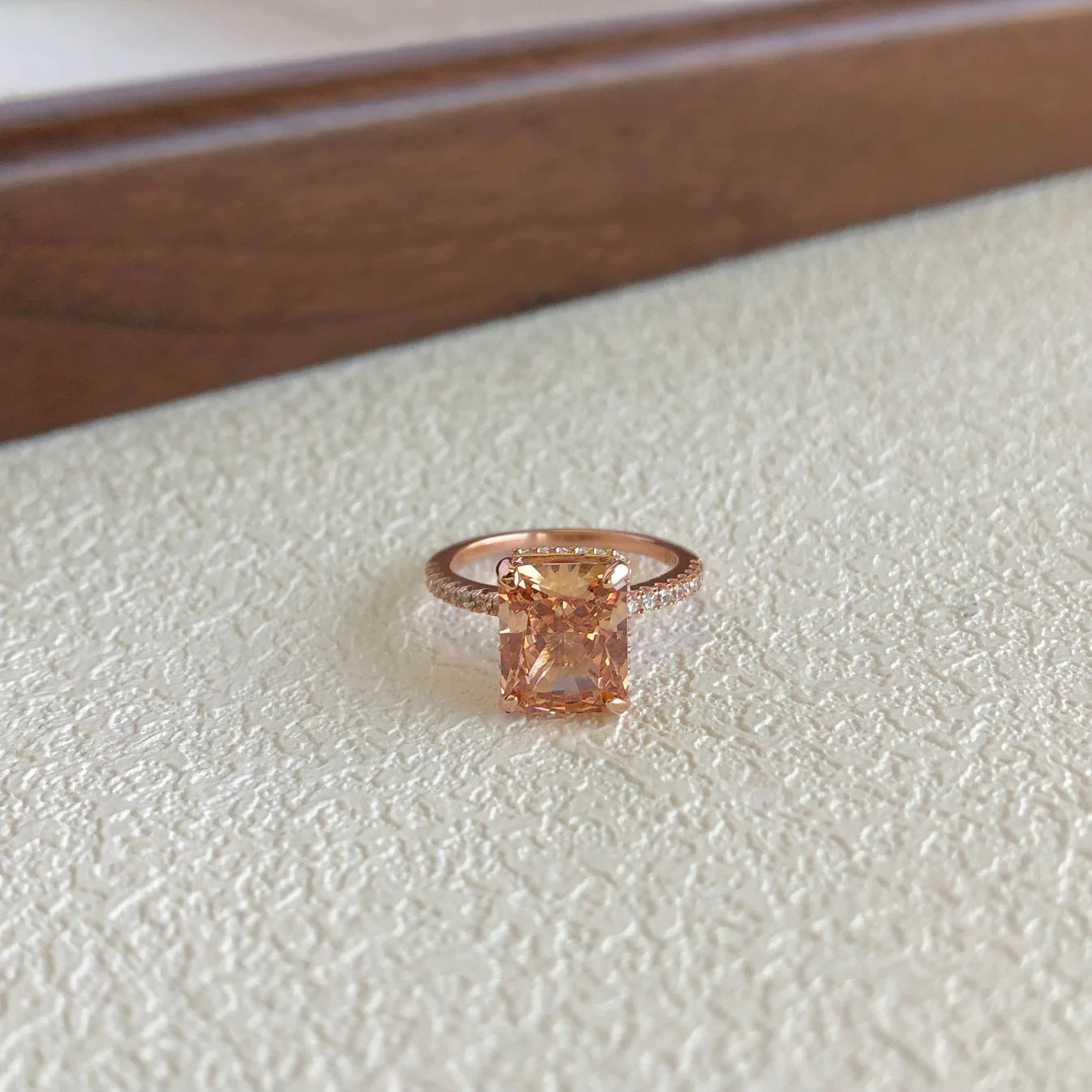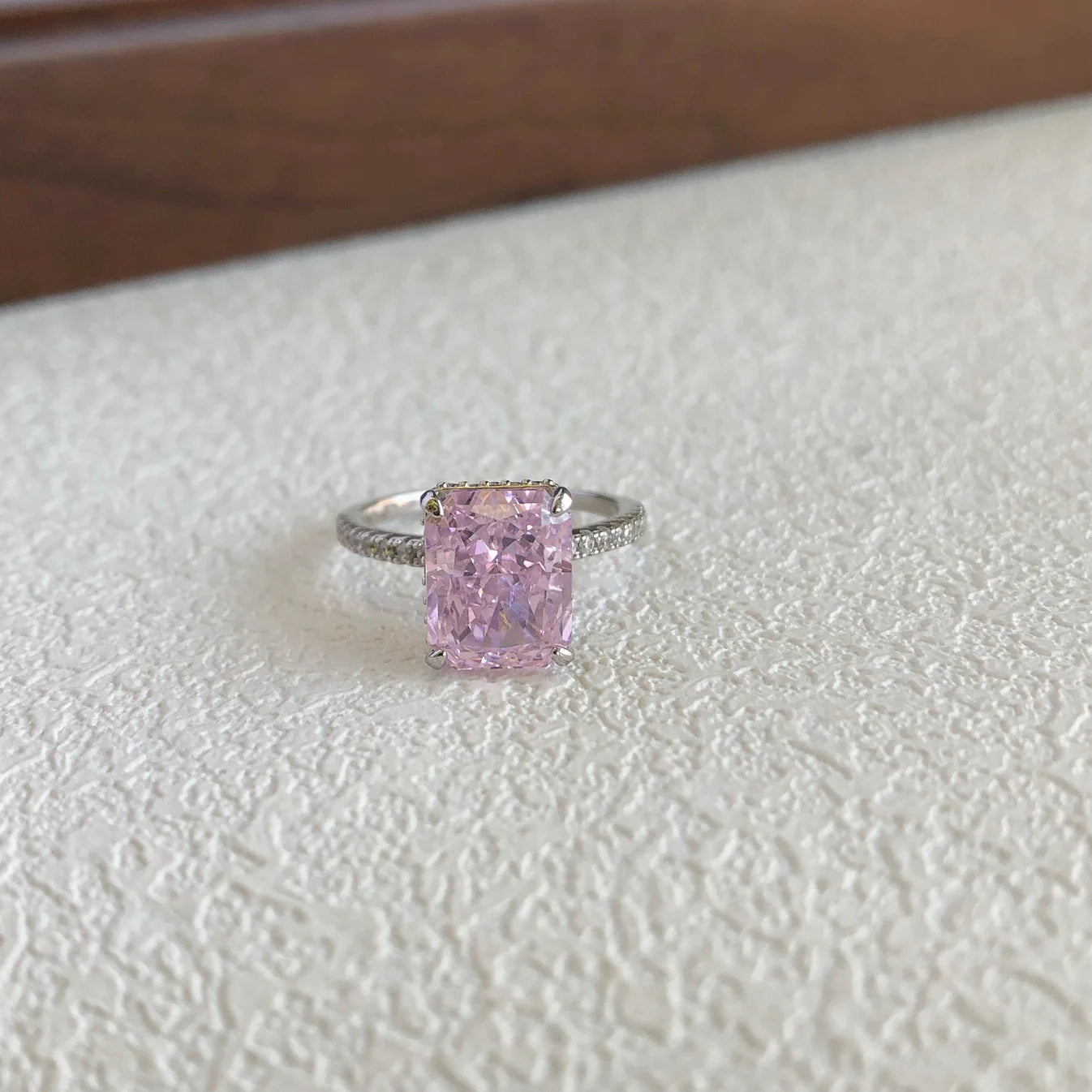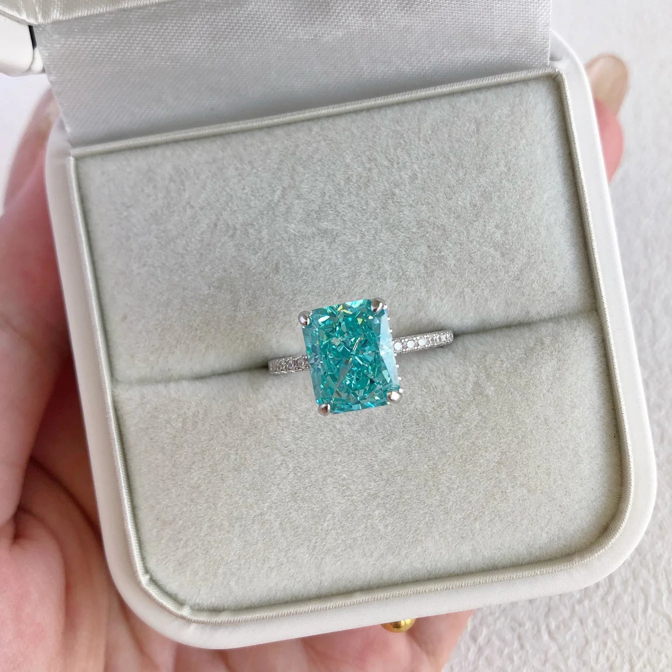 925 Sterling Silver High Carbon Diamond Colored Zircon Super Flash Wedding Ring