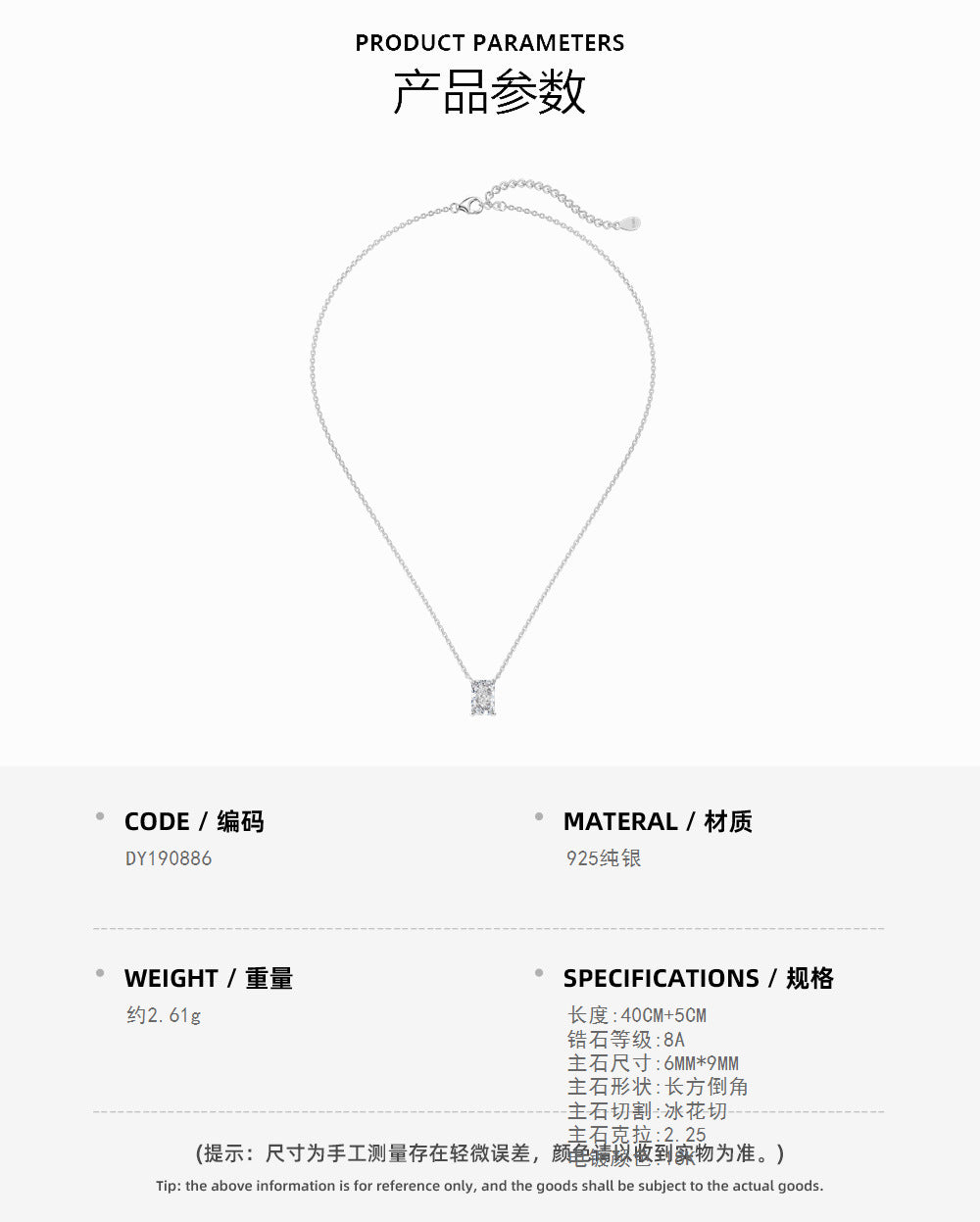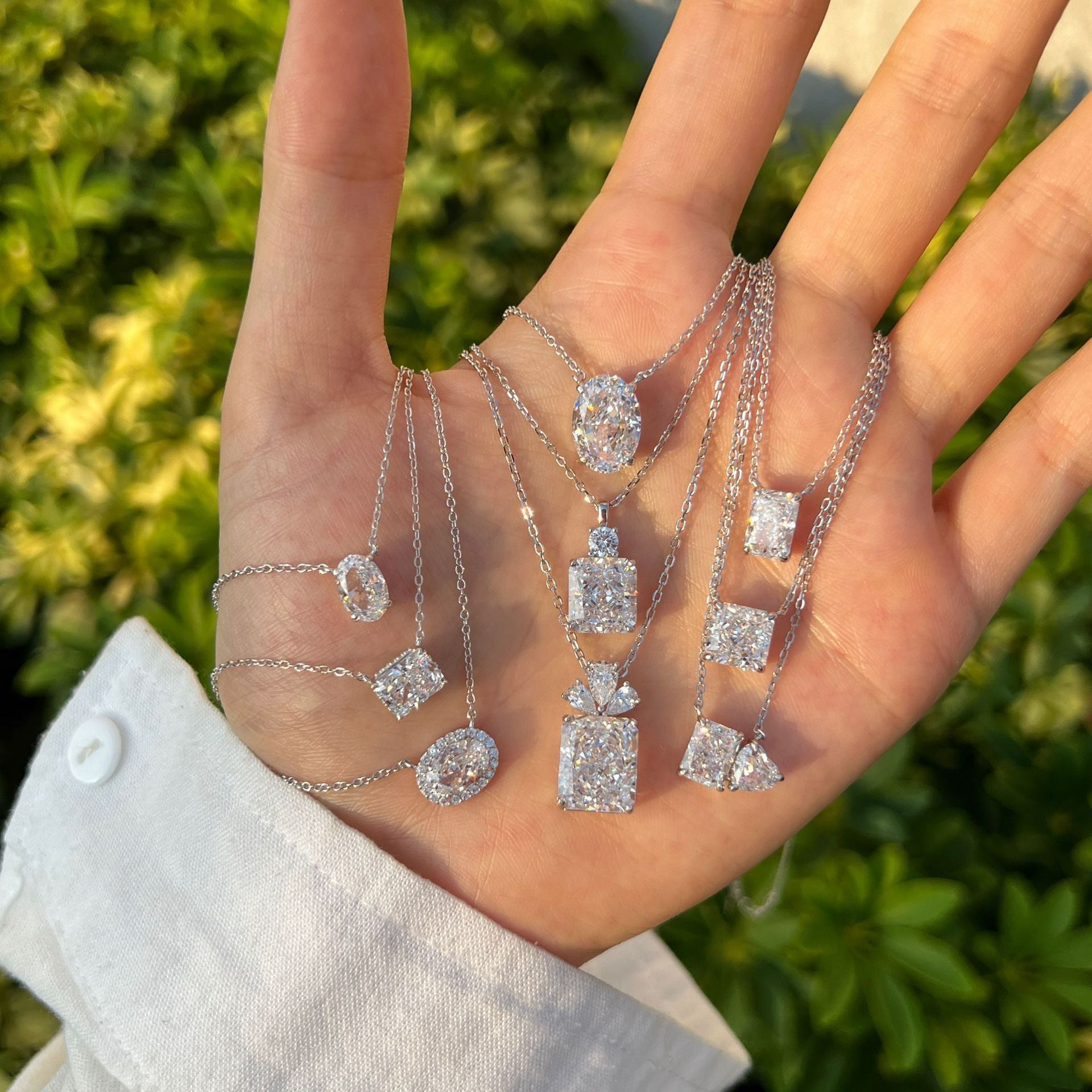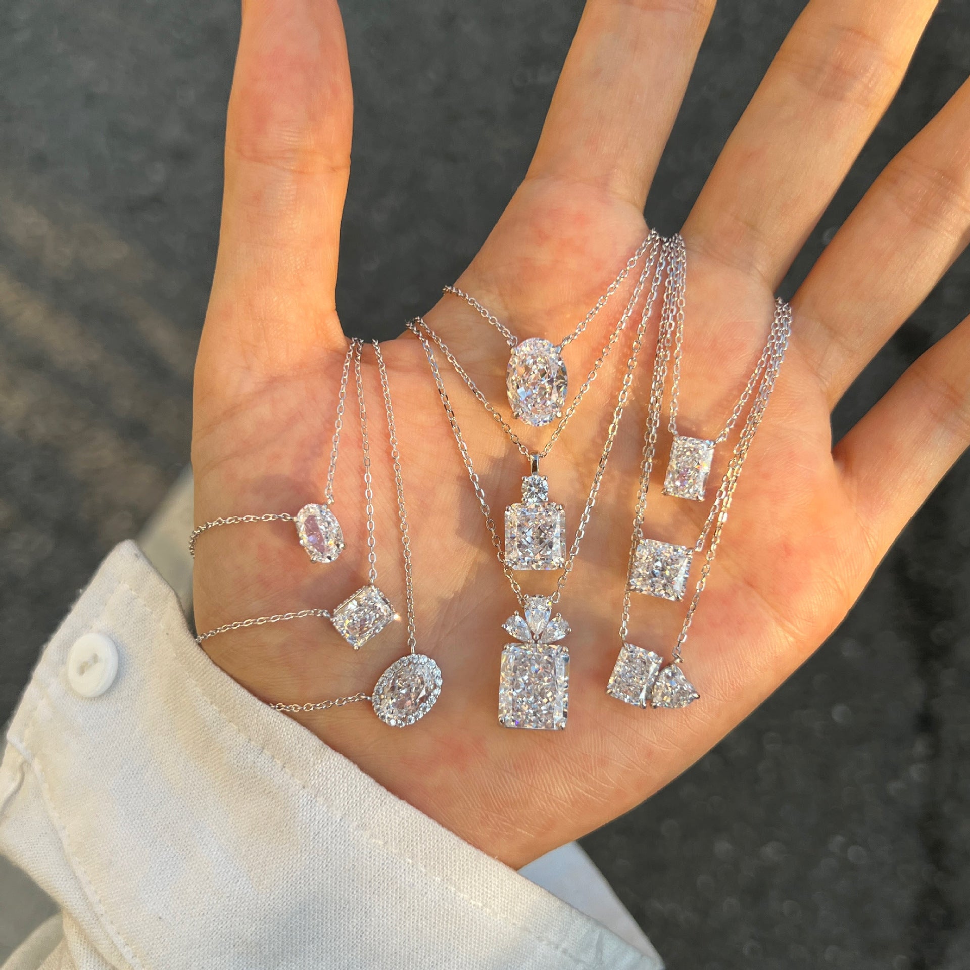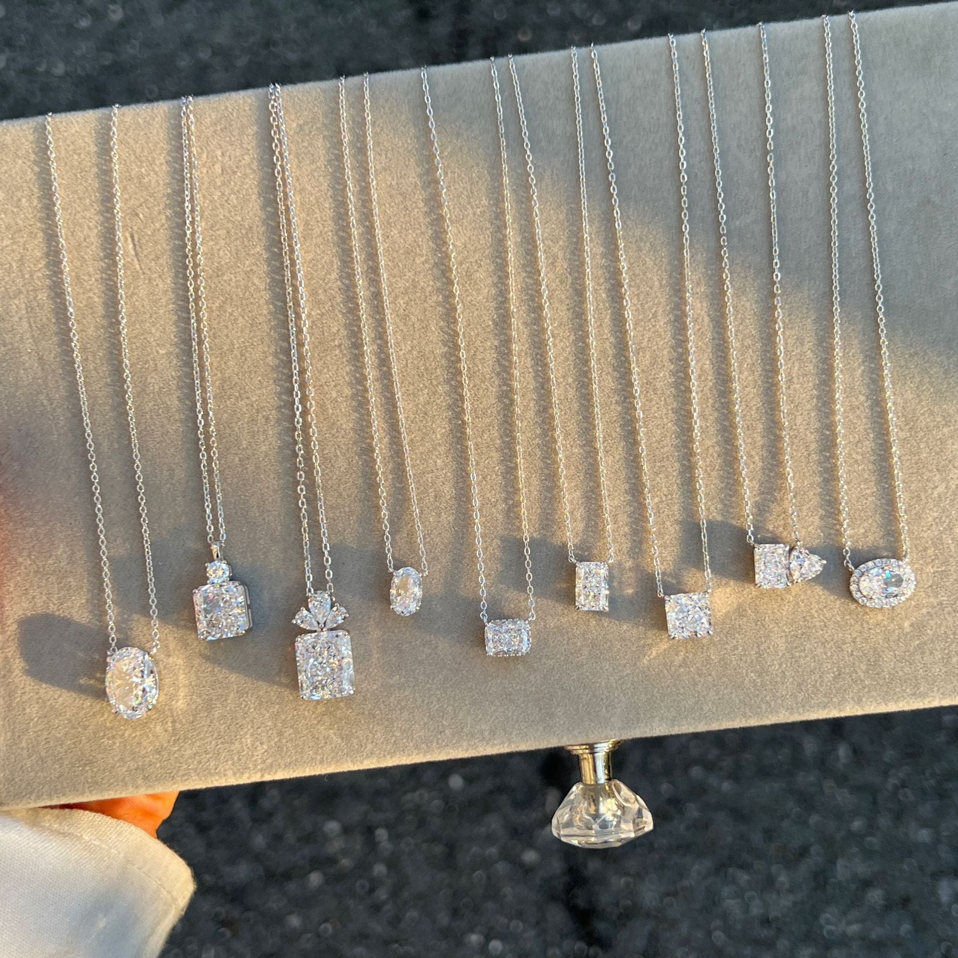 925 Sterling Silver Sugar Cubes 8A Ice Flower Cut Zirconia Inlaid Premium Necklace