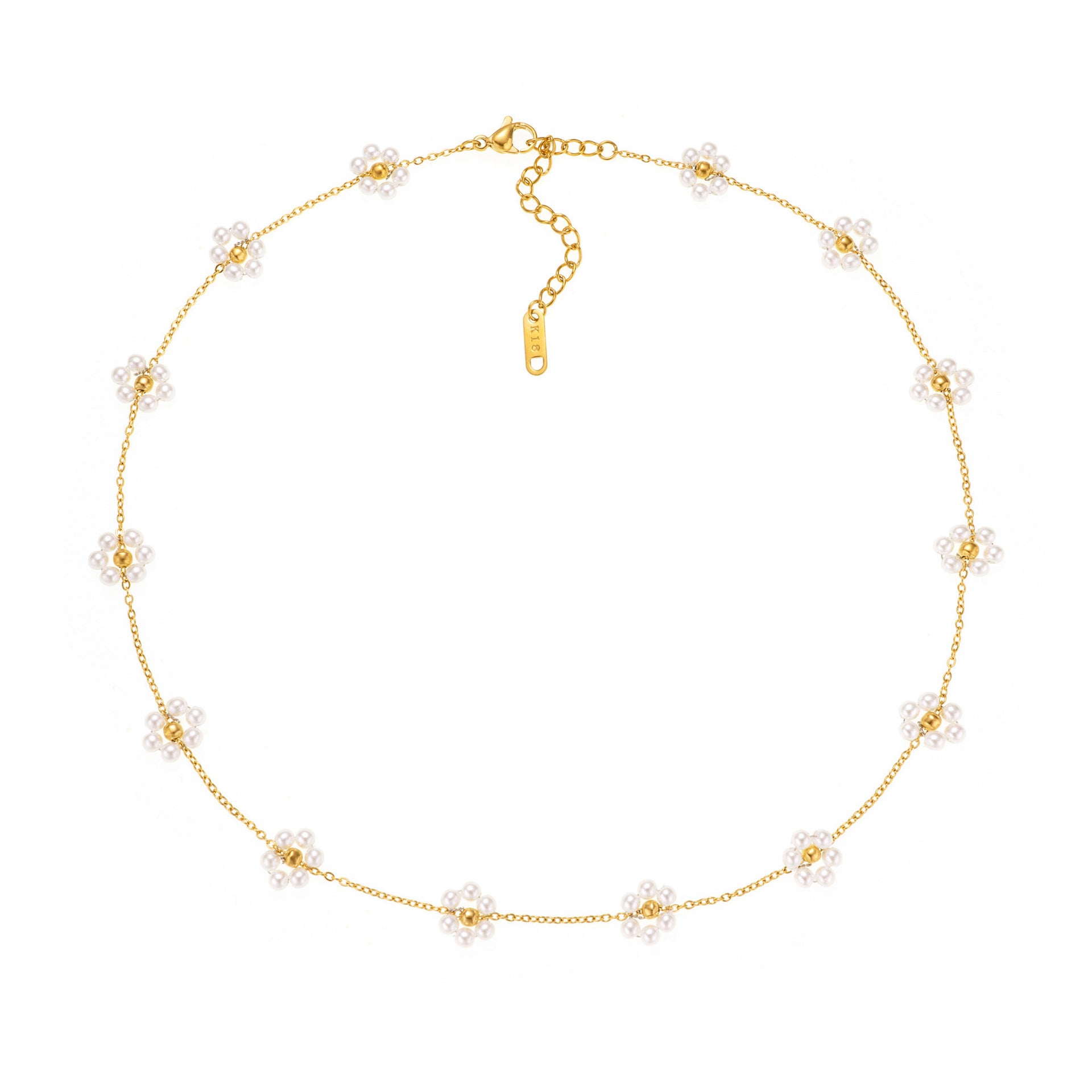 Material: 18K furnace vacuum plated stainless steel, synthetic pearl